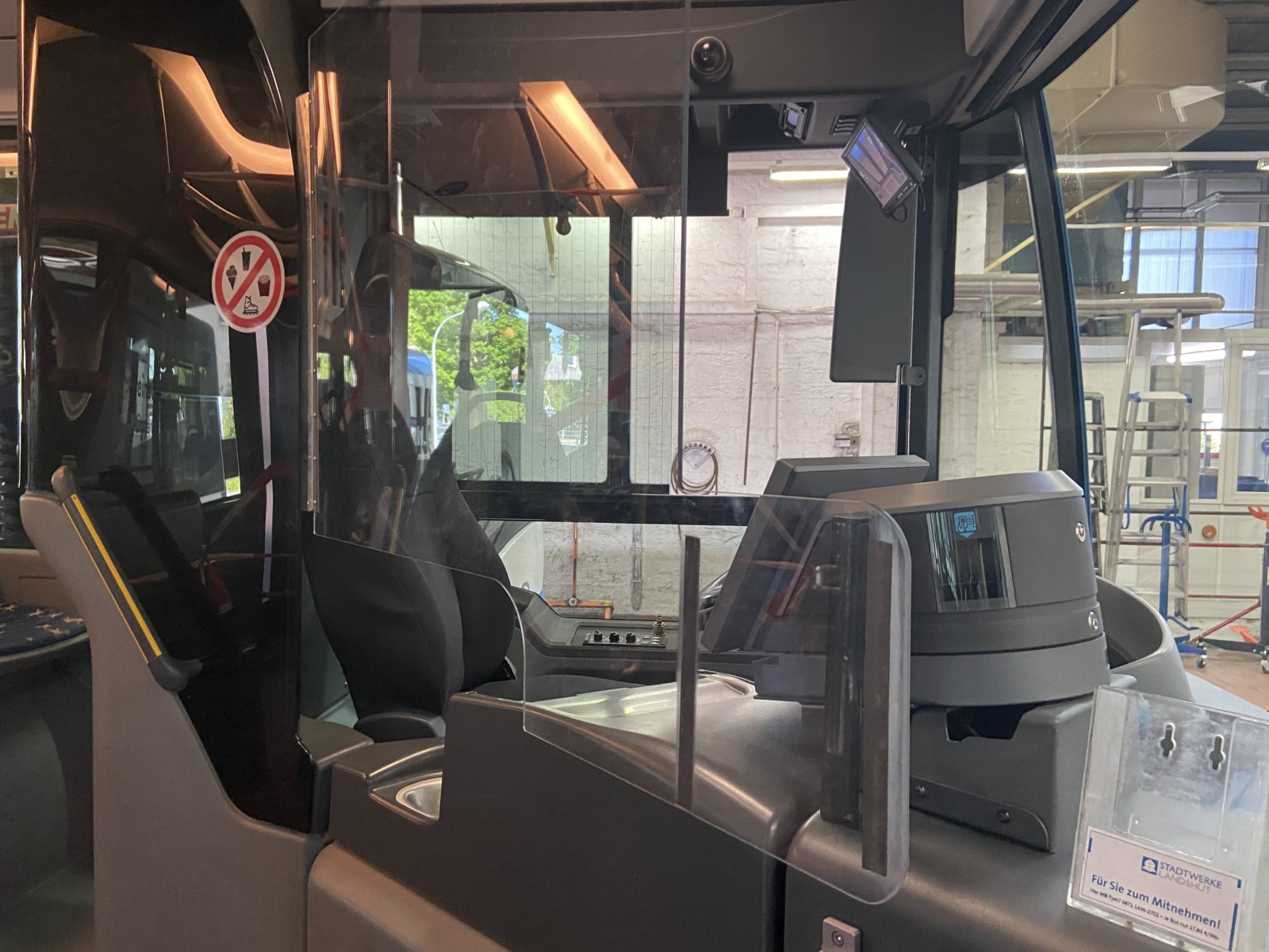 Ab Montag, 15.6., verkaufen unsere BusfahrerINNEN wieder Tickets im Bus. Zum Schutz der BusfahrerINNEN statten wir derzeit die Fahrerplätze unserer rund 60 Busse mit einem Spuckschutz aus. Die Fahrscheinkontrollen im Bus werden ebenfalls wieder aufgenommen.