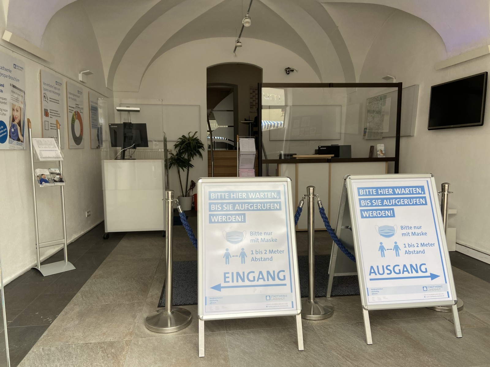 Kundenzentrum mit Sicherheitsvorrichtungen wegen Corona